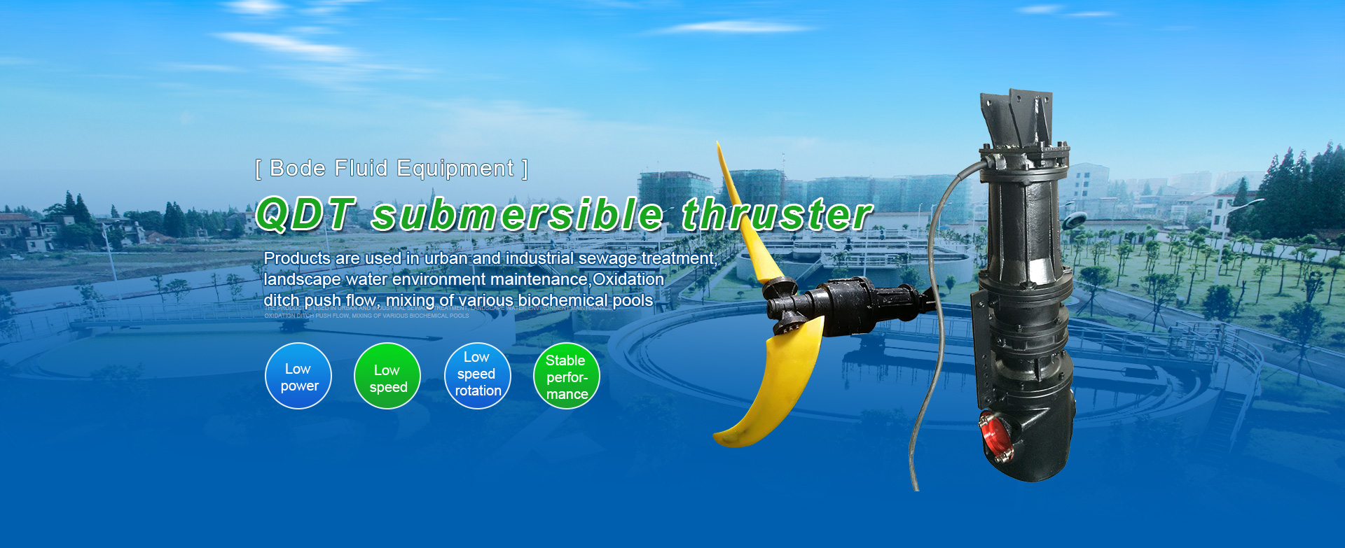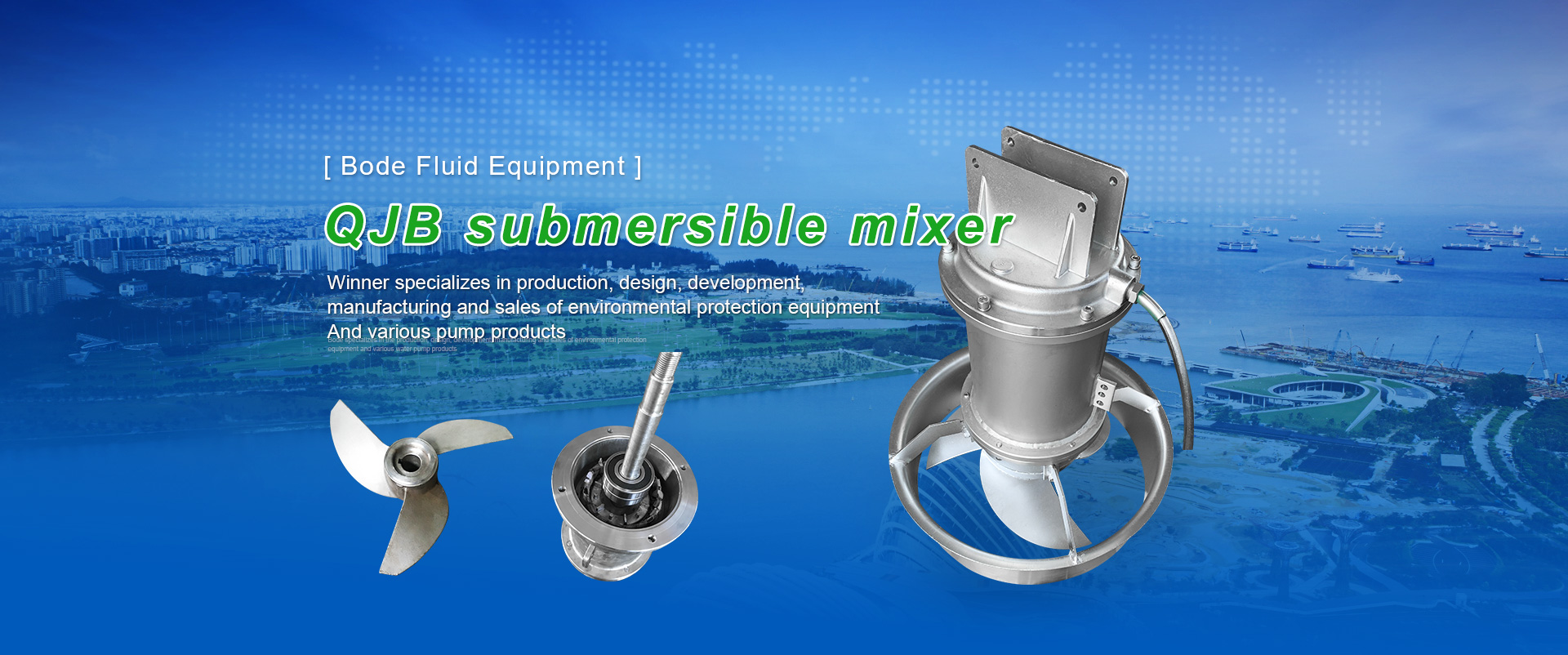 The main products are: QJB submersible mixer, QXB submersible aerator, QDT submersible low-speed thruster submersible sewage pump, reflux pump, screw pump, etc.